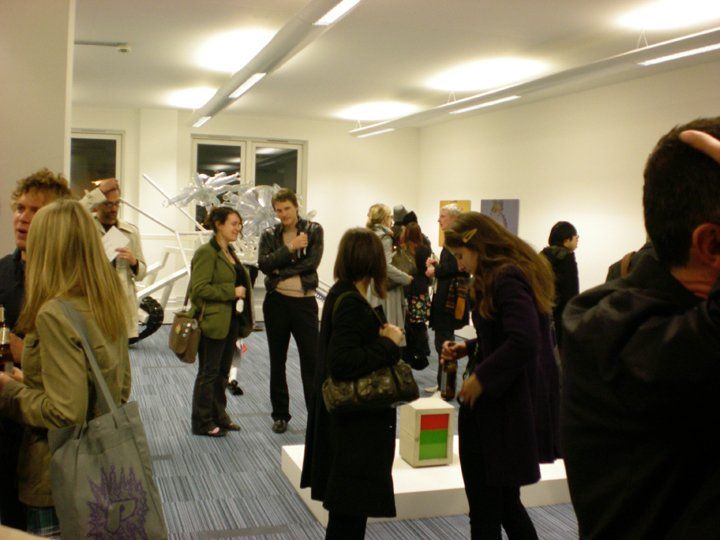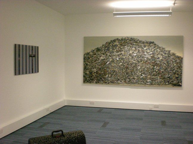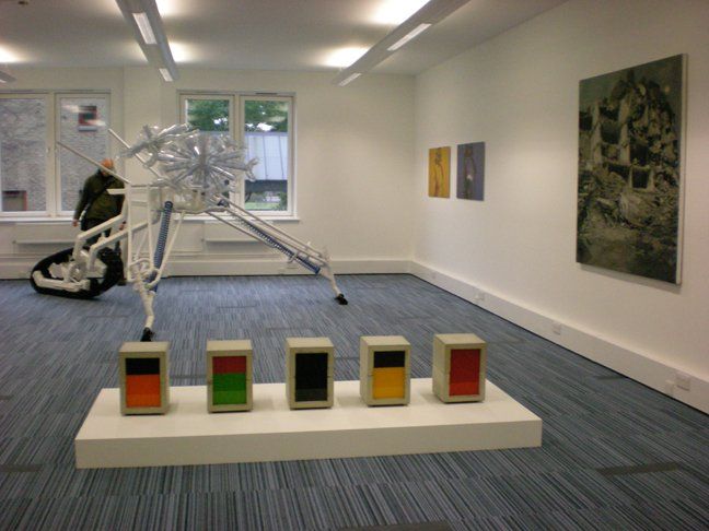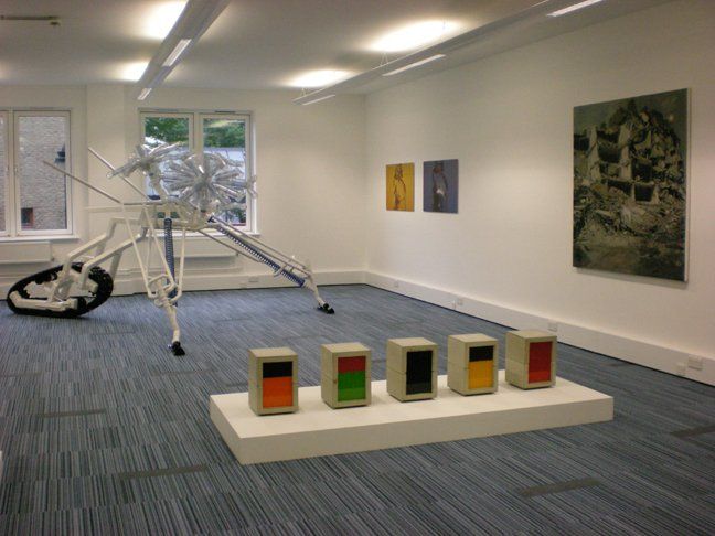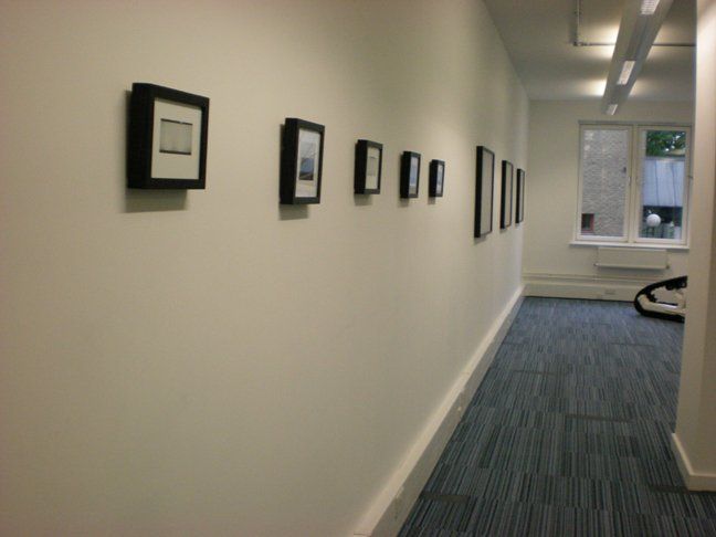 Given the inescapable statement of the building’s function, Richard Ducker of Fieldgate Gallery, has curated an exhibition around the idea of architectural and flights of fancy that respond to the strong office sensibility of the space.