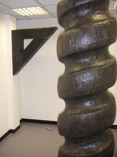 Valentin Carron deals with the iconography of Swiss vernacular culture. Objects, images, symbols and traditions of rural culture are injected with a certain sense of humour. The perception of a sheer and perfect Switzerland – ideally symbolized by its mountains, chalets, forests and churches – is in a subversive way the object of celebration and critique. This is through a reproduction strategy by which his cross-shaped sculptures combine religious vocabulary and minimal abstraction liberating the object from its usual sense. While the artist plays with authenticity, craft, ready-made, commemorative monument and kitsch aesthetic – with works such as frame angles without architectural purpose or polystyrene-made twisted columns – his creations remain too ambiguous to embody a unique ideology.