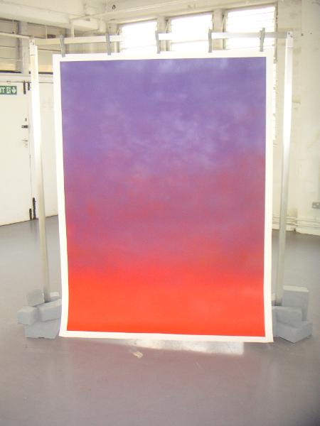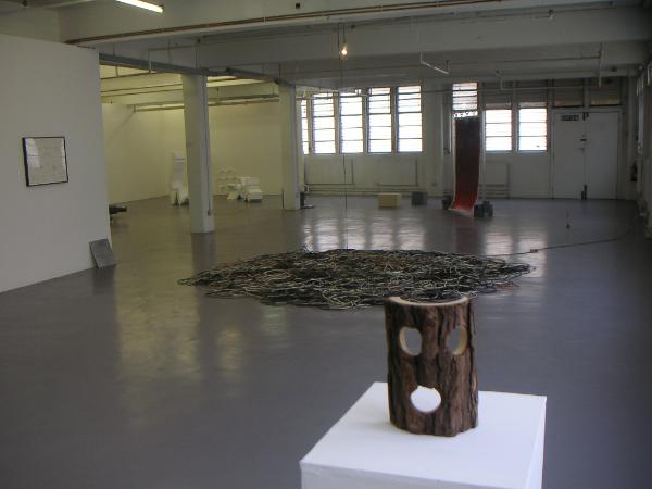 Magali Reus’s work combines references to Land Art, modernism and exotic ornament. In your own time (2007), made with beach towels, is the abstract panorama of an artificial place. Palm trees, sea and formalism. Her installations, mainly realised in-situ, generate an atmosphere evoking business lobbies as well as sea side shops. The landscapes depicted by the artist with a certain sense of humour also function as a sort of visual Muzak or elevator music. Lulling the eyes of the viewer, her works can be compared to a synthetic lapping of waves: the nostalgic impression of a coloured simulacrum.