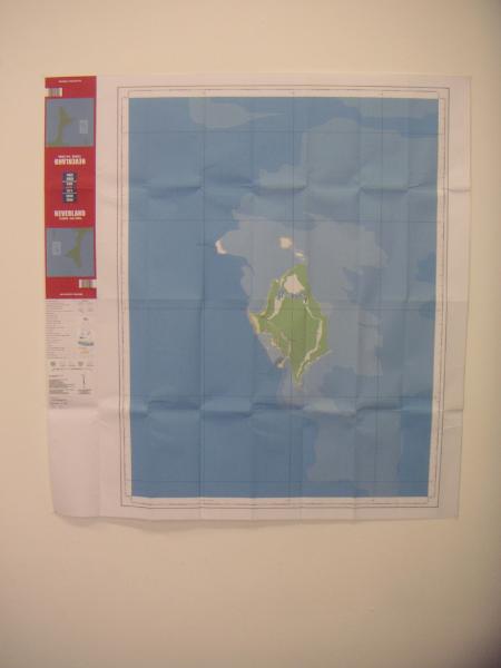 In Never Neverland, Julien Discrit realizes the cartography of an imaginary landscape created by Sir J.M. Barrie to be the setting for the adventures of his children’s hero, Peter Pan. This map is based on a real territory, a Bahaman isle bought by Walt Disney to install an amusement park. The cartographic representation is a passing space, a connection between a fictitious universe, recurrent in the collective imagination, and its concrete geographical version. This last is exploitable by the entertainment culture and by the world that it models itself on both in a cinematographic and touristy way. Representing a paradigmatic figure of a twisted utopia, attesting to a contamination of the metaphoric space of childhood by the industrial production of “dreams”, this artwork questions the way we create representations of reality: “A chart is not a territory,” as Alfres Korzybski, philosopher of American language, highlighted. In these terms, Neverland, indeed, will never be Neverland.