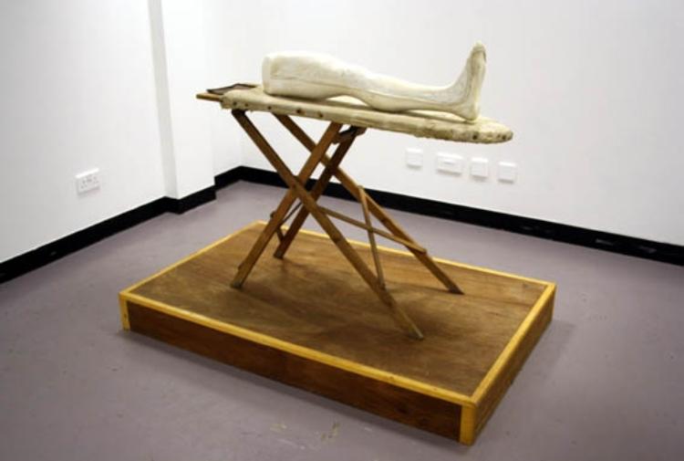 Stuart Brisley (b. 1933) has produced a highly diverse range of works and utilises a broad span of methodologies, resulting in live actions, installations, paintings, drawings and writings. His pioneering long- duration performances, first carried out in the 1960s, gained him an international reputation. Brisley’s prime contribution to this show will consist of an installation entitled “Psychocleaning” (2008), involving the deployment of various props – an old ironing board, a low plinth, a dirty white plaster leg – with other items placed in relation to these (possibly highlighted) objects. Brisley frequently works in an open-ended manner, his installations and (if he chooses to carry them out) actions developing dialogically with the space into which they are inserted or performed. “Psychocleaning” as an operative term has a number of connotations, including ethnic cleansing but also the troubled and troubling pseudo-obsession with dirt and its emphatic erasure that is so prominent a trope within Capitalism. (In 2003 Book Works published Brisley’s novel Beyond Reason: Ordure). Despite these clues or contextualising triggers “Psychocleaning” is, however, a work open to many possible interpretations; in part a potential stage-set for live action, it is also a configuration of formal and material relationships designed to act as a machine for the generation of meanings other than those consciously marked out by the artist himself.