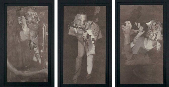 The work of Philip Hausmeier explores in a range of media, including installation, video and collage, bodily perception and its environmental correlations, and particularly concentrates on the physical and psychological conditions that define the self as an impermanent and fragmented entity. The body is seen as a base material from which to examine potential meanings of subjective feeling. ‘To the other shore’ (2007) shows a projected loop of struggling birds endlessly falling. Immersed in this almost hypnotic sequence the viewer begins to falls with them, and finding nowhere to rest, fluctuates between the filmed image and an internal change of state becoming conscious. This ambiguity between image and subjective feeling is further investigated in Hausmeier’s new series of collages called ‘Uncertain Stages’. Magazine images of musicians and singers caught in their emotional exaggeration on stage are cut and arranged to reform the image to the edge of hovering between abstract formalism and the remains of self-expression. The body as a means for externalizing emotion appears to be in conflict with its surroundings and other bodies, broken and fragmented. Yet at the same time the works seem to present themselves as poetic plays of light and darkness, functioning as extensions of a torn and unstable subjectivity.