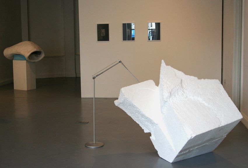 If Richard Ducker’s previous sculptures turned the detritus of consumer culture into monuments to our obsession with things, this new work turns monumental sculptural tropes into dumb chunks of material poised precariously between ugliness and fascination. ‘Blockhead’ seems to speak of rough marble as a trace of the hand of the artist, yet its grammar and syntax – from the material used, polystyrene, to the disproportionate metal ‘plinth’ from which it collapses – do not quite grasp and relay an intended meaning. Like dyslexic writing, it leaves us uncertain as to whether it is profoundly poetic or badly structured. ‘Dark Matter’ appears to quote a monochromatic tradition, but on close inspection the black shards, insulating material covered in flock, have just as much in common with the discarded props of a pre GCI sci-fi movie, when such concoctions had to make do as interstellar debris floating in deep space or the rough surface of a new planet. Too casually unfinished to convince as a plaster model, ‘Untitled’ (2010) articulates its own awkward pointlessness. Failing to resolve into either sense or nonsense, Ducker’s sculptures turn the artist’s own alienation from language into a shared bodily experience. They disturb the connection between form and meaning, between body and the ‘clean and proper self’ of a subjectivity that has fully entered into language and the semiotic, yet they do not allow us to wallow in abjection and the symbolic. In Ducker’s work, now as before, we are deceived by objects and failed by language, left in conflict between desire and meaning, daftness and poetry.
