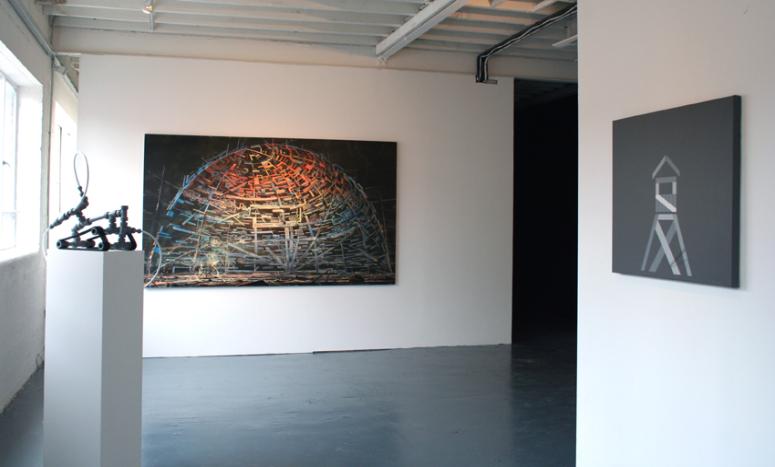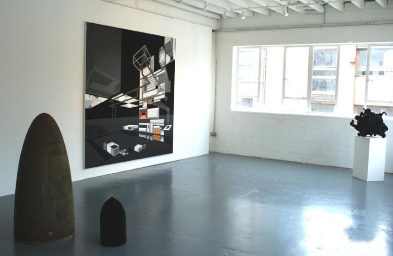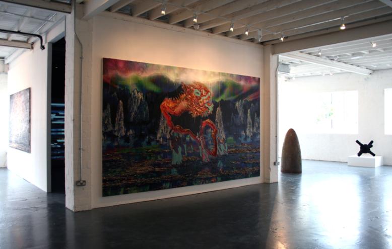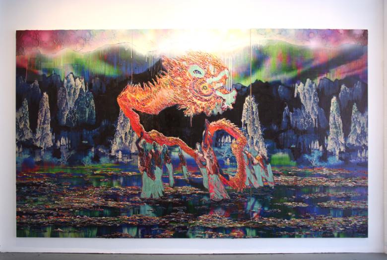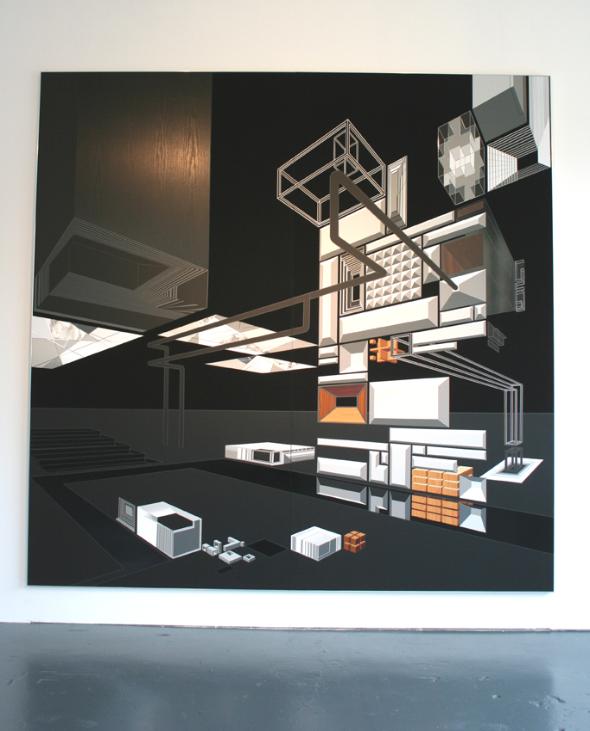 Diann Bauer’s field of work lies somewhere between painting and installation. She does large- scale sight specific paintings working either directly with the given architecture of the gallery or altering the architecture itself to both manipulate the viewing of the painting as well and using space and architecture itself to impact the viewer. The paintings are replete with detail using violent images form a number of cultures and integrates diverse visual styles and techniques. An excess of visual information in Bauer’s work generates a sense of confusion and dissolution between space, object and subject, and leaves us trying to decipher a narrative that seems graspable, but is just out of reach. Sourcing material and influence from nineteenth century Japanese woodcuts, European Baroque painting, experimental contemporary architecture and spectacular elements of cinema Bauer situates the viewer within a swirling visually complex representation of space, time and movement.