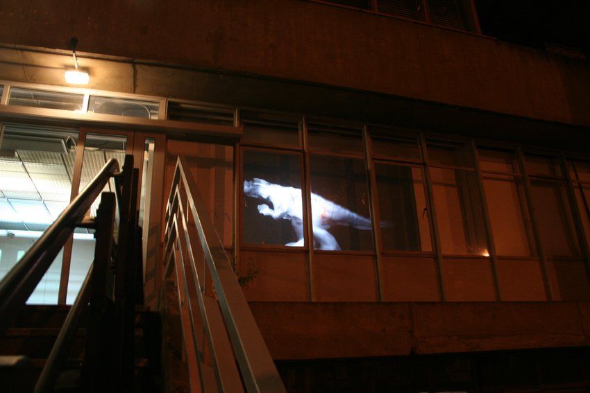 Kathleen Herbert’s ‘Limelight’, 2010, was originally commissioned by the Royal Opera House Covent Garden, and seeks to deconstruct the physical space of the theatre and the spectacle of illusion. Set within an empty and darkened opera house and accompanied by the sound of her feet moving across the floor the camera intimately watches a ballerina; her body moves in and out of the frame as she prepares for a performance. Holding a spotlight as she performs a scene Odile and Odette from Swan Lake , the camera follows the light as it dissects the space revealing architectural details of a working opera house and mirrors the views of the performer. Kathleen Herbert appears courtesy of Danielle Arnaud Gallery.